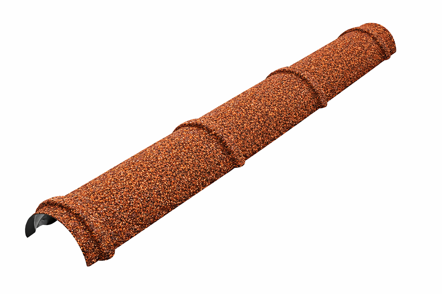 Coama 3 elemente Novatik Natura în nuanța Terra Rossa completează creasta acoperișului și protejează împotriva pătrunderii apei și zăpezii spulberate. Finisajul cu granule minerale păstrează aspectul natural și estetic.