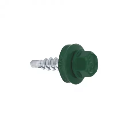 Șuruburile autoforante Klimas (Wkret-Met) sunt destinate fixării țiglei metalice, tablei cutate și accesoriilor de acoperiș pe structuri din lemn sau metal. Realizate din oțel carbon zincat și tratat termic, acestea oferă o rezistență mecanică ridicată și o protecție excelentă împotriva coroziunii. Capul hexagonal este vopsit în nuanța Verde Închis (RAL 6005), asigurând o integrare estetică perfectă cu acoperișurile metalice de aceeași culoare.
