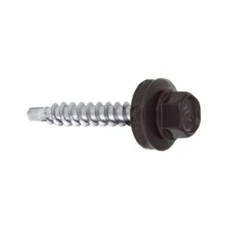 Șuruburile autoforante Klimas (Wkret-Met) sunt proiectate pentru fixarea țiglei metalice, tablei cutate și a accesoriilor de acoperiș pe structuri din lemn sau metal. Realizate din oțel carbon zincat și tratat termic, oferă rezistență mecanică ridicată și protecție excelentă împotriva coroziunii. Capul hexagonal vopsit în nuanța Maro Închis (RAL 8019) se integrează estetic cu acoperișurile și fațadele în aceeași culoare.